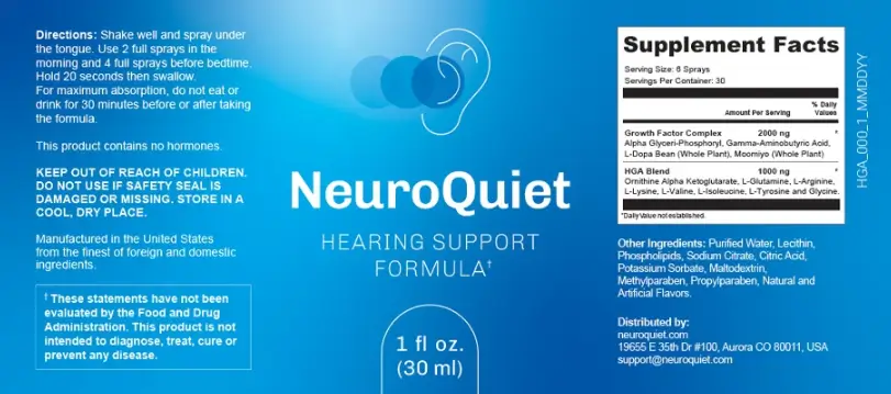 NeuroQuiet is a powerful and effective hearing support and all-day energy helper. Thousands of people enjoy taking NeuroQuiet every day with great results and we have not received a single complaint yet. Once your body adapts to the ingredients you will notice less noise and better ear health.